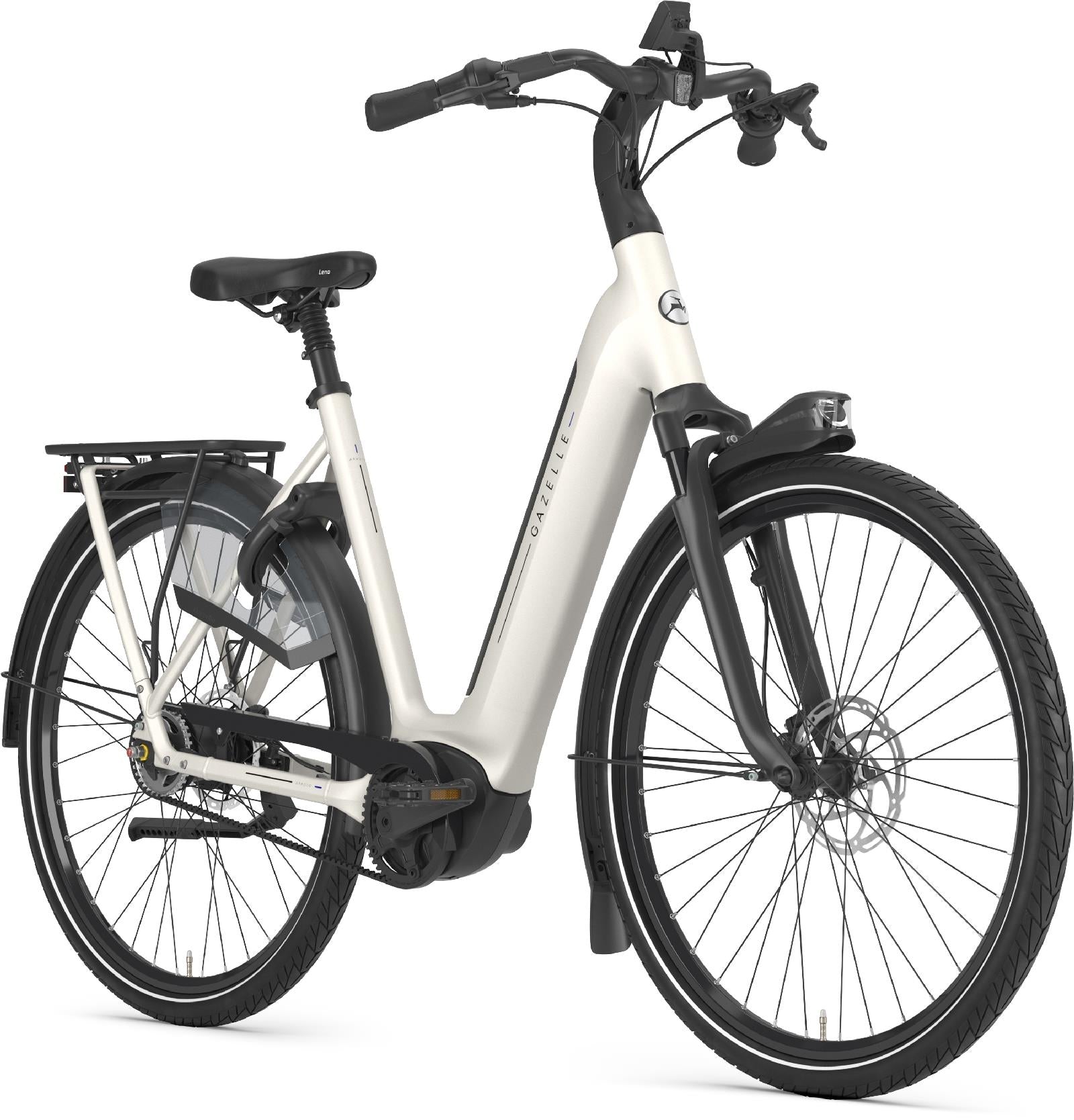| Rahmen | Stabiler, leichter Gazelle Arroyo Oversized-Aluminiumrahmen mit 68,5° Steuerkopfwinkel und 69,5° Sitzwinkelgeometrie für ein ruhiges und komfortables Fahrverhalten. Die Sitzhaltung ist aufrecht und daher besonders angenehm sowie schonend für die Wirbelsäule. Der Einstieg liegt sehr tief und und ist besonders weit. Auf- und Abstieg von diesem Gazelle Arroyo C5 Elite E-Bike gelingen daher absolut leicht. Die innenliegende Kabelführung schützt die Kabel und sorgt für eine aufgeräumte Optik. |
